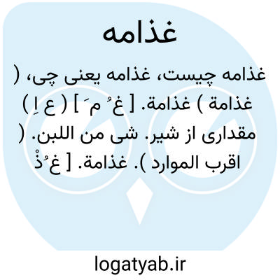 ( غذامة ) غذامة. [ غ ُ م َ ] ( ع اِ ) مقداری از شیر. شی من اللبن. ( اقرب الموارد ).