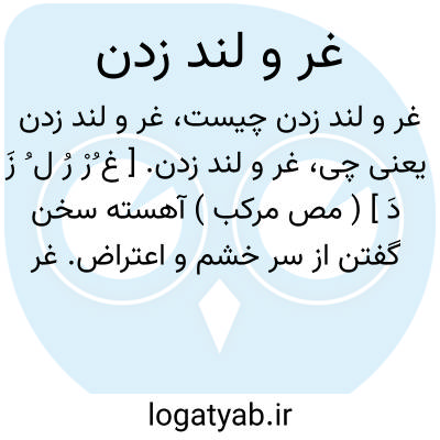غر و لند زدن. [ غ ُرْ رُ ل ُ زَ دَ ] ( مص مرکب ) آهسته سخن گفتن از سر خشم و اعتراض. غر زدن. غرغر کردن. قر زدن. قرقر کردن. غر و لند کردن. لند و لند کردن. ژکیدن.