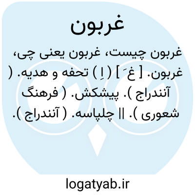 غربون. [ غ َ ] ( اِ ) تحفه و هدیه. ( آنندراج ). پیشکش. ( فرهنگ شعوری ). || چلپاسه. ( آنندراج ).