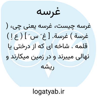 ( غرسة ) غرسة. [ غ َ س َ ] ( ع اِ ) قلمه. شاخه ای که از درختی یا نهالی میبرند و در زمین میکارند و ریشه میگیرد. جوانه غرس کرده شده: غرسة الکرم المطمورة؛ جوانه یک بوته مو خوابانیده. || باغ. باغ شاهی. باغی که عادةً آن را آبیاری کنند. || کلنگ ( پرنده ). ( دزی ج 2 ص 206 ).