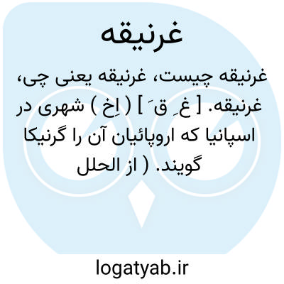 غرنیقه. [ غ ِ ق َ ] ( اِخ ) شهری در اسپانیا که اروپائیان آن را گرنیکا گویند. ( از الحلل السندسیة ج 1 ص 331 ). رجوع به گرنیکا شود.