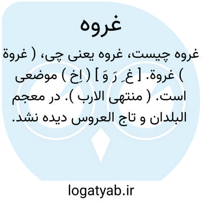 ( غروة ) غروة. [ غ ِ رَ وَ ] ( اِخ ) موضعی است. ( منتهی الارب ). در معجم البلدان و تاج العروس دیده نشد.