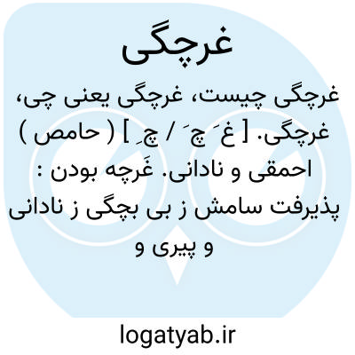 لغت نامه دهخدا غرچگی. [ غ َ چ َ / چ ِ ] ( حامص ) احمقی و نادانی. غَرچه بودن: پذیرفت سامش ز بی بچگی ز نادانی و پیری و غرچگی.فردوسی ( شاهنامه چ بروخیم ج 6 ص 1667 ).