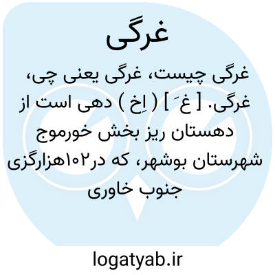 غرگی. [ غ َ ] ( اِخ ) دهی است از دهستان ریز بخش خورموج شهرستان بوشهر، که در102هزارگزی جنوب خاوری خورموج و دامنه خاوری کوه بهرامشاه قرار دارد. زمین آن کوهستانی است و هوای آن گرمسیر و مالاریائی می باشد. سکنه آن 120 تن است و دارای مذهب تشیعاند و به زبان فارسی سخن می گویند. آب آن از چاه و چشمه تأمین می شود. محصول آنجا غلات، خرماو لبنیات می باشد و شغل اهالی زراعت و گله داری است. و راه مالرو دارد. ( از فرهنگ جغرافیائی ایران ج 7 ).