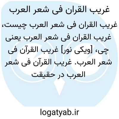 [ویکی نور] غریب القرآن فی شعر العرب. غریب القرآن فی شعر العرب در حقیقت مجموعه سؤالاتی است که نافع بن ازرق از ابن عباس (متوفی 68ق) درباره توضیح برخی از واژه های قرآن، پرسیده و ابن عباس برای توضیح و روشن شدن آنها به اشعار عرب استشهاد نموده و معنای آنها را بیان کرده است. کتاب با تحقیق محمد عبدالرحیم و احمد نصرالله منتشر شده است. با توجه به این که ابن عباس از صحابه پیامبر(ص) و از مفسران قرآن می باشد لذا این کتاب منبع قابل استفاده ای برای واژه شناسی قرآن می تواند قرار گیرد.
