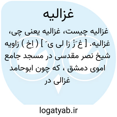 غزالیه. [ غ َزْ زا لی ی َ ] ( اِخ ) زاویه شیخ نصر مقدسی در مسجد جامع اموی دمشق، که چون ابوحامد غزالی در آنجا بسیار می نشست بنام غزالیه معروف شد. ( طبقات الشافعیة از غزالی نامه صص 143 - 144 ). رجوع به زاویه شود.