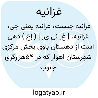غزانیه. [ غ ِ نی ی ِ ] ( اِخ ) دهی است از دهستان باوی بخش مرکزی شهرستان اهواز که در 54هزارگزی جنوب خاوری اهواز و 3هزارگزی جنوب اتومبیل رو قرار دارد. دشت و گرم سیر است و سکنه آن 60 تن شیعه اند که به عربی و فارسی سخن میگویند. آب آن از رود کوپال تأمین میشود. و محصول آن غلات و شغل اهالی زراعت و گله داری است. راه آن در تابستان اتومبیل رو است. ( فرهنگ جغرافیایی ایران ج 6 ).
