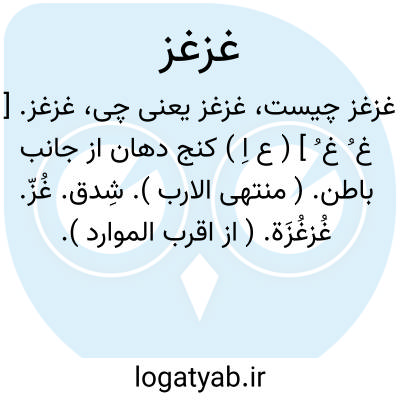 لغت نامه دهخدا غزغز. [ غ ُ غ ُ ] ( ع اِ ) کنج دهان از جانب باطن. ( منتهی الارب ). شِدق. غُزّ. غُزغُزَة. ( از اقرب الموارد ).