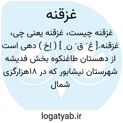 غزقنه.[ غ َ ق َ ن ِ ] ( اِخ ) دهی است از دهستان طاغنکوه بخش فدیشه شهرستان نیشابور که در 18هزارگزی شمال فدیشه قرار دارد. جلگه و سردسیر است و 79 تن سکنه دارد که شیعه و فارسی زبانند. آب آن از قنات تأمین میشود و محصول آن غلات و تریاک و شغل اهالی زراعت و کرباس بافی است و راه مالرو دارد. ( فرهنگ جغرافیایی ایران ج 9 )
