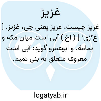 غزیز. [ غ ُزَی ْ ] ( اِخ ) آبی است میان مکه و یمامة. و ابوعمرو گوید: آبی است معروف متعلق به بنی تمیم. جریر گوید:
