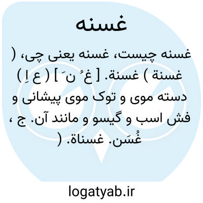 ( غسنة ) غسنة. [ غ ُ ن َ ] ( ع اِ ) دسته موی و توک موی پیشانی و فش اسب و گیسو و مانند آن. ج، غُسَن. غسناة. ( منتهی الارب ) ( آنندراج ).
