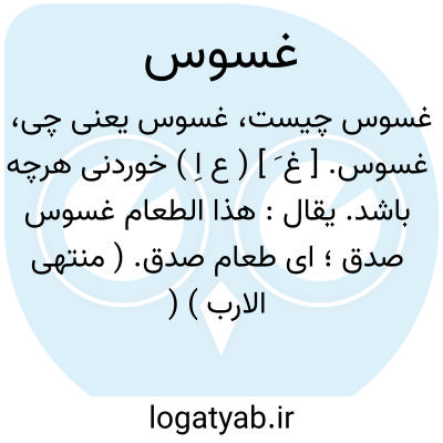 غسوس. [ غ َ ] ( ع اِ ) خوردنی هرچه باشد. یقال: هذا الطعام غسوس صدق؛ ای طعام صدق. ( منتهی الارب ) ( آنندراج ) ( قطر المحیط )؛ یعنی این طعام حقیقی است.