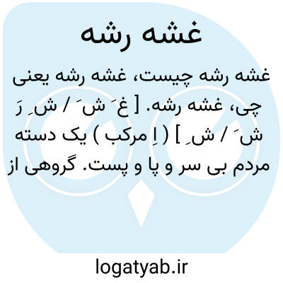 غشه رشه. [ غ َ ش َ / ش ِ رَ ش َ / ش ِ ] ( اِ مرکب ) یک دسته مردم بی سر و پا و پست. گروهی از جنسهای مختلف و همه پست و دنی. دسته ای از زنان و کودکان از خانواده ای. اوباش: یک مشت غشه رشه.