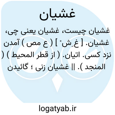 غشیان. [ غ ِش ْ ] ( ع مص ) آمدن نزد کسی. اتیان. ( از قطر المحیط ) ( المنجد ). || غشیان زنی؛ گائیدن و به مجامعت فروگرفتن او را. ( از منتهی الارب ). جماع کردن. ( غیاث اللغات ). کنایه از جماع است چنانکه غشیان به معنی آمدن نیز خود کنایه است. ( از قطر المحیط ).