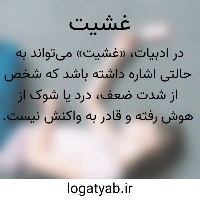 کلمه «غشیت» به معنای بیهوشی است و در متون پزشکی و متون کهن به کار رفته است. وقتی گفته می‌شود کسی دچار «غشیت» شده، منظور این است که هوشیاری خود را از دست داده و در حالت بیهوشی یا اغما قرار گرفته است. این واژه از ریشه عربی «غشا» گرفته شده که مفهوم پوشانده شدن دارد و نشان می‌دهد شعور یا حواس فرد توسط حالتی خارجی یا داخلی پوشانده شده و از کار افتاده است. در ادبیات، «غشیت» می‌تواند به حالتی اشاره داشته باشد که شخص از شدت ضعف، درد یا شوک از هوش رفته و قادر به واکنش نیست. در پزشکی امروز نیز بیهوشی یا اغما، مشابه معنای اصلی این واژه است و نشان‌دهنده فقدان کنترل آگاهانه بر بدن و ذهن می‌باشد. بنابراین، «غشیت» هم در کاربرد کلاسیک و هم در معنای علمی، به فقدان هوشیاری و حالتی شبیه از حال رفتن اشاره دارد و در متون مختلف جایگاه ثابتی دارد.
