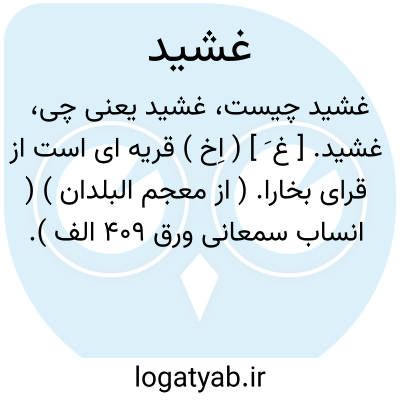 غشید. [ غ َ ] ( اِخ ) قریه ای است از قرای بخارا. ( از معجم البلدان ) ( انساب سمعانی ورق 409 الف ).