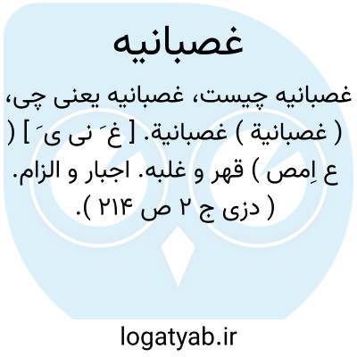 ( غصبانیة ) غصبانیة. [ غ َ نی ی َ ] ( ع اِمص ) قهر و غلبه. اجبار و الزام. ( دزی ج 2 ص 214 ).