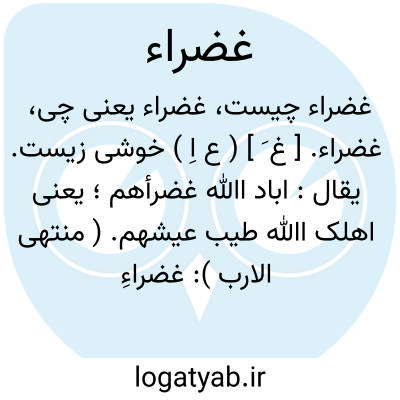 غضراء. [ غ َ ] ( ع اِ ) خوشی زیست. یقال: اباد اﷲ غضرأهم؛ یعنی اهلک اﷲ طیب عیشهم. ( منتهی الارب ): غضراءِ عیش؛ فراوانی و خیر و غضارت آن. ( از اقرب الموارد ). || ( ص ) الارض الطیبة العلکة الخضرة؛ زمین پاکیزه سبزرنگ نزدیک آب. || زمینی که گل نیکو دارد. ( منتهی الارب ). ارض فیها طین حرّ. ( اقرب الموارد ). زمین خوش خاک. ( مهذب الاسماء ). || گل خوش. ( دهار ). || زمینی که تانکنند درخت خرما نرویاند. ( منتهی الارب ) ( از اقرب الموارد ). ج، غَضاری. ( منتهی الارب ) ( اقرب الموارد ).