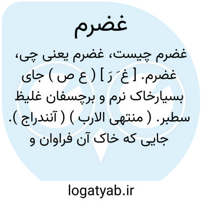 غضرم. [ غ َ رَ ] ( ع ص ) جای بسیارخاک نرم و برچسفان غلیظ سطبر. ( منتهی الارب ) ( آنندراج ). جایی که خاک آن فراوان و نرم و چسبنده و غلیظ باشد. ( از اقرب الموارد ). || ( اِ ) پاره خشک از گل سرخ نیکو. یا جایی است که به سنگ نرم و گچ ماند. ( منتهی الارب ) ( آنندراج ). پاره ای از گل سرخ حُر و گفته اند: جایی که مانند سنگ نرم و گچ باشد. ( از اقرب الموارد ).