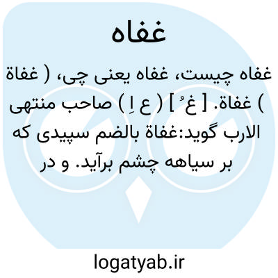 ( غفاة ) غفاة. [ غ ُ ] ( ع اِ ) صاحب منتهی الارب گوید:غفاة بالضم سپیدی که بر سیاهه چشم برآید. و در تاج العروس و فرهنگهای معتبر دیگر دیده نشد و ظاهراً غفاة غلط چاپی است و صحیح آن غفاءة است که در فرهنگها به معنی «سفیدی در حدقه » آمده. رجوع به غفاءة شود.