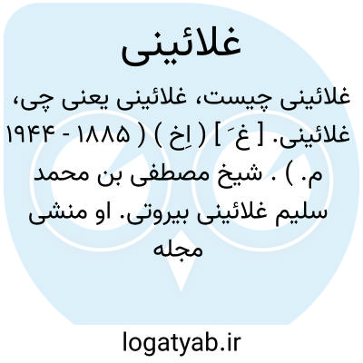 غلائینی. [ غ َ ] ( اِخ ) ( 1885 - 1944 م. ). شیخ مصطفی بن محمد سلیم غلائینی بیروتی. او منشی مجله النبراس و مدرس مکتب السلطانی و دانشکده عثمانیة در بیروت است. او راست: