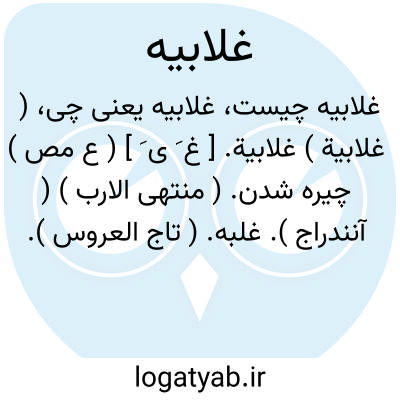 لغت نامه دهخدا ( غلابیة ) غلابیة. [ غ َ ی َ ] ( ع مص ) چیره شدن. ( منتهی الارب ) ( آنندراج ). غلبه. ( تاج العروس ).