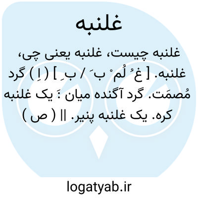 غلنبه. [ غ ُ لُم ْ ب َ / ب ِ ] ( اِ ) گرد مُصمَت. گرد آگنده میان:َ یک غلنبه کره. یک غلنبه پنیر. || ( ص ) بسیار: پول غلنبه. || گفتاری درشت از کسی که چنین گفته او را نسزد. قلمبه: کلمات غلمبه. عبارات غلنبه. حرف غلنبه.