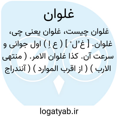 غلوان. [ غ ُل ْ ] ( ع اِ ) اول جوانی و سرعت آن. کذا غلوان الامر. ( منتهی الارب ) ( از اقرب الموارد ) ( آنندراج ). غُلَواء. غُلْواء. ( منتهی الارب ) ( اقرب الموارد ).