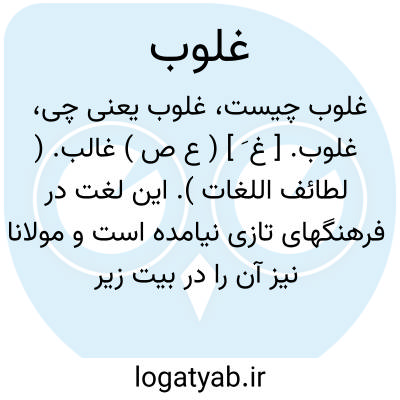 غلوب. [ غ َ ] ( ع ص ) غالب. ( لطائف اللغات ). این لغت در فرهنگهای تازی نیامده است و مولانا نیز آن را در بیت زیر استعمال کرده است: