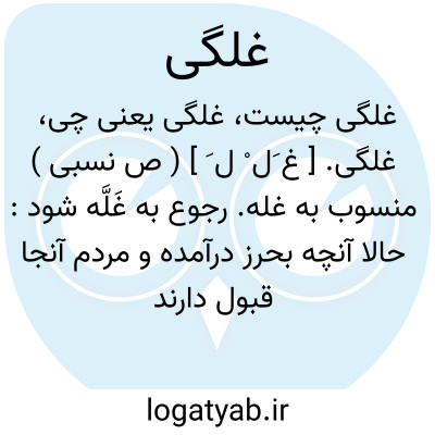 غلگی. [ غ َل ْ ل َ ] ( ص نسبی ) منسوب به غله. رجوع به غَلَّه شود: حالا آنچه بحرز درآمده و مردم آنجا قبول دارند واجب غلگی یکساله چهل هزار خروار غله صدمنی که به مال دیوان میدهند سوی زری و اجناس دیگر. ( روضات الجنات فی اوصاف مدینة هرات ج 1 ص 315 ).