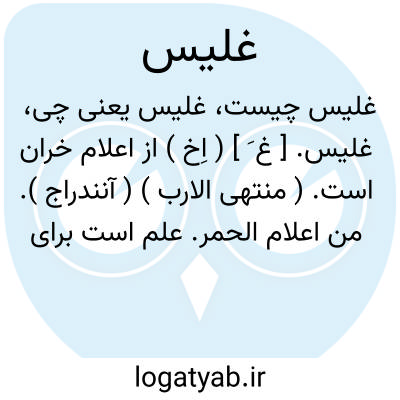 غلیس. [ غ َ ] ( اِخ ) از اعلام خران است. ( منتهی الارب ) ( آنندراج ). من اعلام الحمر. علم است برای خری. ( از اقرب الموارد ).