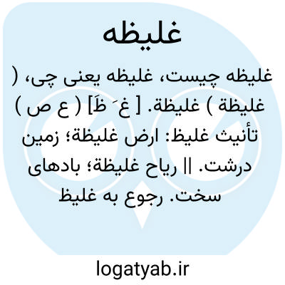 ( غلیظة ) غلیظة. [ غ َ ظَ] ( ع ص ) تأنیث غلیظ: ارض غلیظة؛ زمین درشت. || ریاح غلیظة؛ بادهای سخت. رجوع به غلیظ شود.