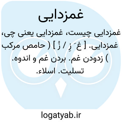 غمزدایی. [ غ َ زِ / زُ ] ( حامص مرکب ) زدودن غم. بردن غم و اندوه. تسلیت. اسلاء.