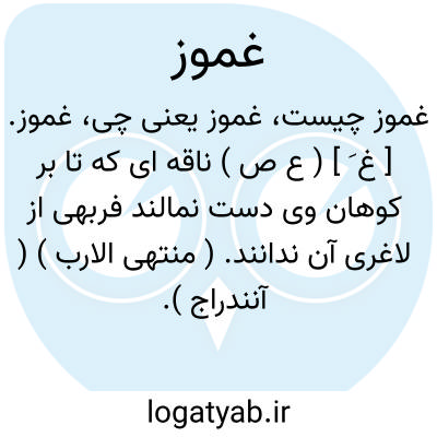 غموز. [ غ َ ] ( ع ص ) ناقه ای که تا بر کوهان وی دست نمالند فربهی از لاغری آن ندانند. ( منتهی الارب ) ( آنندراج ). ناقه عروک. ( اقرب الموارد ).