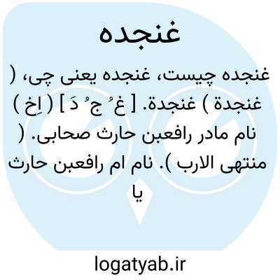 ( غنجدة ) غنجدة. [ غ ُ ج ُ دَ ] ( اِخ ) نام مادر رافعبن حارث صحابی. ( منتهی الارب ). نام ام رافعبن حارث یا عبدالحارث صحابی بدری، و بعضی آن را عنجرة به عین مهمله یا عنترة گفته اند. ( از تاج العروس ).