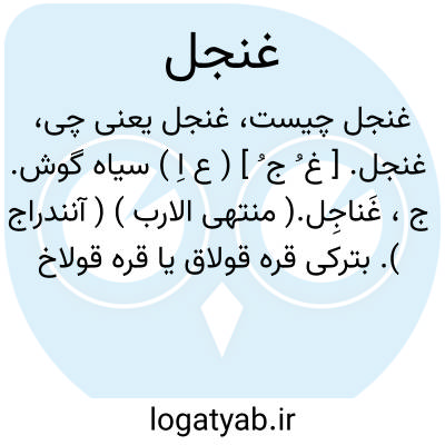 غنجل. [ غ ُ ج ُ ] ( ع اِ ) سیاه گوش. ج، غَناجِل.( منتهی الارب ) ( آنندراج ). بترکی قره قولاق یا قره قولاخ گویند. فُرانِق. پروانه. پروانک. تَفَه. عناق الارض.