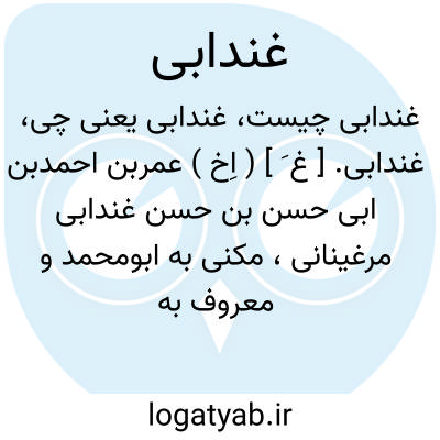 غندابی. [ غ َ ] ( اِخ ) عمربن احمدبن ابی حسن بن حسن غندابی مرغینانی، مکنی به ابومحمد و معروف به فرغانی. وی فقیه سمرقند و صاحب فتوای آنجا بود. در بلخ از ابوجعفر محمدبن حسین سمنجانی ( سمنگانی )حدیث شنید. ولادت او به سال 485 هَ. ق. بود. ( از اللباب فی تهذیب الانساب ). رجوع به معجم البلدان شود.