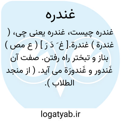 ( غندرة ) غندرة.[ غ َ دَ رَ ] ( ع مص ) بناز و تبختر راه رفتن. صفت آن غَندور و غَندورَة می آید. ( از منجد الطلاب ). نوعی راه رفتن با تکبر و تبختر: تغندر الغلام مشی الغندرة، و هی مشیة فیها تبختر و خیلاء. ( دزی ج 2 ص 229 ). || حالت شخص غندور ( جوان ظاهرساز و خوشگذران و احمق ). رجوع به دزی ج 2 ص 229 و غَندور شود.