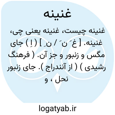 غنینه. [ غ َ ن َ / ن ِ ] ( اِ ) جای مگس و زنبور و جز آن. ( فرهنگ رشیدی ) ( از آنندراج ). جای زنبور نحل، و غنینه منج، خانه زنبور است و به عربی خَشرَم خوانند. ( از برهان قاطع ): غَنینه مُنج؛ خانه زنبورعسل. کندو. رجوع به برهان قاطع، فرهنگ رشیدی و مدخل های منج و کندو شود.