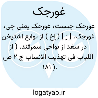 غورجک. [ رَ ] ( اِخ ) از توابع اشتیخن در سغد از نواحی سمرقند. ( از اللباب فی تهذیب الانساب ج 2 ص 181 ).
