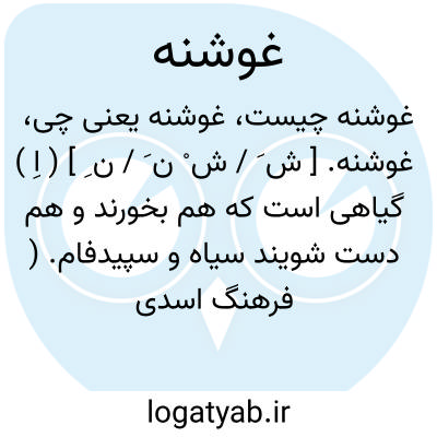 غوشنه. [ ش َ / ش ْ ن َ / ن ِ ] ( اِ ) گیاهی است که هم بخورند و هم دست شویند سیاه و سپیدفام. ( فرهنگ اسدی نخجوانی ). همان غوبنگ است اما در فرهنگ و نسخه وفائی گیاهی است که موقع تری نان خورش کنند و چون بخشکد دست بدان شویند، و آن نوعی از سماروغ است و زنان جهت فربهی در حلوا پزند. ( از فرهنگ رشیدی ). دست و جامه بدان شویند و رنگ آن سیاه و سفید است و نوعی از کماة باشد. ( از انجمن آرا ) ( آنندراج ) ( از فرهنگ جهانگیری ) ( برهان قاطع ). و بعضی گویند نوعی از فُطر یعنی سماروغ است. ( ذخیره خوارزمشاهی ) ( برهان قاطع ). دزی ج 2 ص 231 ذیل غَوشَنَه به نقل از ابن البیطار آرد: نوعی از قارچ نامعلوم، در مغرب و بنقل از لغت نامه کتاب المنصوری رازی این عبارت را آورده: «الغوشفة ( کذا ) عشبة قلویة تستعمل اشتاتاً». ( حاشیه برهان قاطع چ معین ). صاحب الابنیه عن حقائق الادویه گوید: غوشنه جنسی است از فطر، و سرد و تر است اندر درجه دوم قولنج آرد و نفخ، و غذای بد دهد. و محمدبن زکریا گوید: طبیعتش به کمی نزدیک است، لیکن از کمی به سردی کمتر است، و از او بهتر است بخاصیت - انتهی. و داود ضریر انطاکی گوید: غوشنه که معروف به مخرمه است مانند کاسه گردی است که در اندرون آن کاسه دیگری کوچکتر از آن قرار دارد و مانند نمک است و قارچ نیست، بلکه شبیه آن است. ( تذکره داود ضریر انطاکی ص 252 ). غوشه. ( بهار عجم ) ( برهان قاطع ). غرشنه. غویشه. ( برهان قاطع ). روشنک. ( بحر الجواهر ):