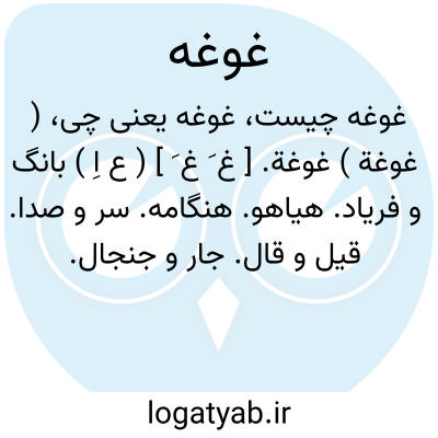 ( غوغة ) غوغة. [ غ َ غ َ ] ( ع اِ ) بانگ و فریاد. هیاهو. هنگامه. سر و صدا. قیل و قال. جار و جنجال. ( دزی ج 2 ص 231 ).