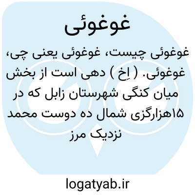 غوغوئی. ( اِخ ) دهی است از بخش میان کنگی شهرستان زابل که در 15هزارگزی شمال ده دوست محمد نزدیک مرز افغانستان قرار دارد. جلگه و گرم و معتدل است. سکنه آن 586 تن که به فارسی و بلوچی سخن میگویند. آب آن از رودخانه هیرمند تأمین میشود. محصول آن غلات،صیفی، لبنیات. شغل اهالی زراعت، گله داری، قالیچه، گلیم و کرباس بافی است. راه مالرو دارد. ساکنان از طایفه سنجری هستند. ( از فرهنگ جغرافیایی ایران ج 8 ).