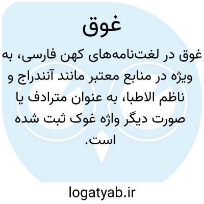 این واژه در لغت‌نامه‌های کهن فارسی، به ویژه در منابع معتبر مانند آنندراج و ناظم الاطبا، به عنوان مترادف یا صورت دیگر واژهٔ غوک ثبت شده است. این هم‌معنایی نشان‌دهندهٔ وجود تنوع آوایی و املایی در زبان فارسی برای اشاره به یک مفهوم مشخص جانورشناختی است. اگرچه کاربرد آن ممکن است در زبان معیار امروزی کمتر رایج باشد، اما وجود آن در متون لغت‌شناسی، جایگاه تاریخی این واژه را در حوزهٔ واژگان فارسی تأیید می‌کند. به طور خلاصه، مصطلح ادبی یا تاریخی برای اشاره به همان موجود است که امروزه عموماً با نام غوک یا قورباغه شناخته می‌شود.