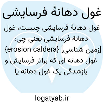 {erosion caldera} [زمین شناسی] غول دهانه ای که براثر فرسایش و بازشدگی یک غول دهانه یا فرسایش یک مخروط آتشفشانی به وجود می آید