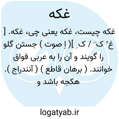 غکه. [ غ ُ ک َ / ک ِ ]( اِ صوت ) جستن گلو را گویند و آن را به عربی فواق خوانند. ( برهان قاطع ) ( آنندراج ). هکجه باشد و به تازی فواق گویند. ( از جهانگیری ). هکهک. ( ناظم الاطباء ).
