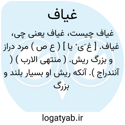 غیاف. [ غ َی ْ یا ] ( ع ص ) مرد دراز و بزرگ ریش. ( منتهی الارب ) ( آنندراج ). آنکه ریش او بسیار بلند و بزرگ باشد. ( از اقرب الموارد ).