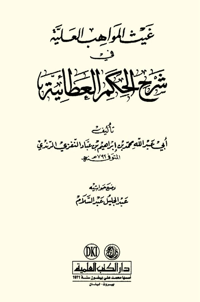 [ویکی نور] غیث المواهب العلیة فی شرح الحکم العطائیة، اثر ابی عبدالله محمد بن ابراهیم بن عباد نفزی رندی (792ق) است که به زبان عربی، در شرح کتاب «الحکم العطائیة» اثر تاج الدین احمد بن محمد بن عبدالکریم بن عطاء الله سکندری نوشته شده است.