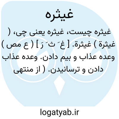 ( غیثرة ) غیثرة. [ غ َ ث َ رَ ] ( ع مص ) وعده عذاب و بیم دادن. وعده عذاب دادن و ترسانیدن. ( از منتهی الارب ) ( اقرب الموارد ). || لگدکوب کردن جنگجویان یکدیگر رادر جنگ. ابن اعرابی گوید: در عبارت کانت بین القوم غیثرة شدیدة، غیثره بمعنی لگدکوب کردن جنگجویان است یکدیگر را. و اصمعی گوید: ترکت القوم فی غیثرة و غیثمة؛ یعنی جدا شدم از قوم در حالی که در جنگ و اضطراب بودند. ( از اقرب الموارد ) ( منتهی الارب ). || ( ص، اِ ) فرومایه. ( منتهی الارب ) ( آنندراج ). سفله مردم. فرومایگان از مردم. ( از اقرب الموارد ). || گروه مردم آمیخته از هر جنس. ( از منتهی الارب )( از آنندراج ). الجماعة المختلطة. ( اقرب الموارد ).