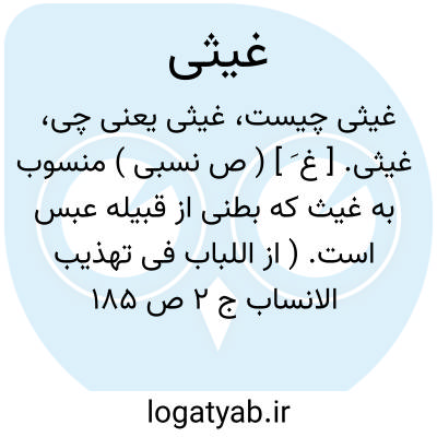 غیثی. [ غ َی ْ ی ِ ] ( ص نسبی ) منسوب به غَیِّث بطنی از قبیله طیی ٔ. ( از اللباب فی تهذیب الانساب ج 2 ص 185 ). رجوع به غَیِّث بن عمرو شود.